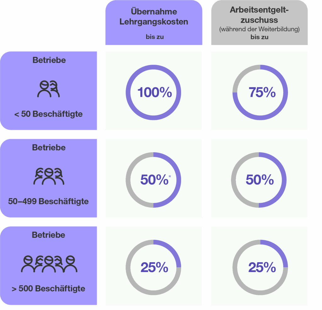 Bis zu 100% Kostenübernahme, inkl. Lohnkostenzuschuss